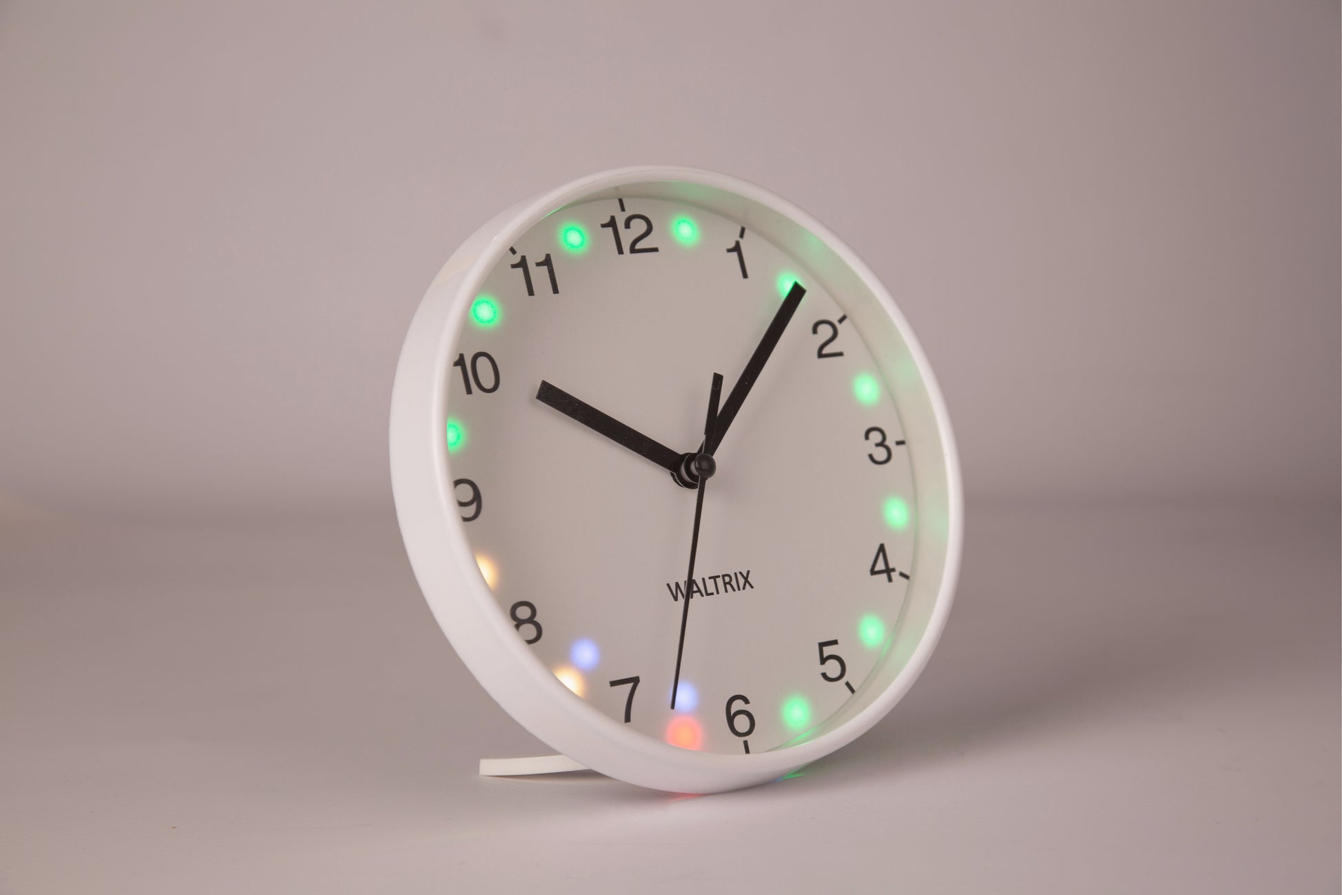 EcoWatch Ida is table clock with LEDs to provide you real-time electricity price information. By lighting up in different colors we can easily show everyone the current electricity price and the clock design allows you to see the current hour and 11 hours ahead.