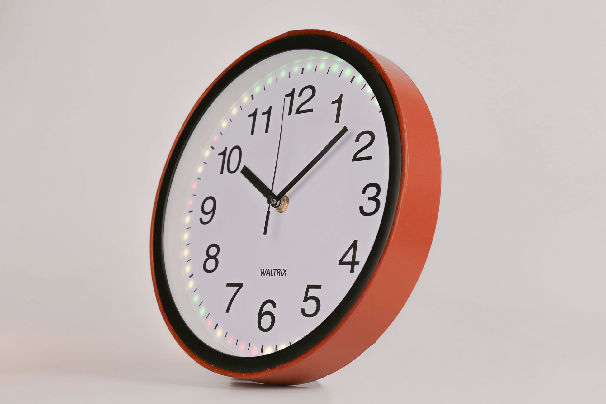 EcoWatch Julia is wall clock with LEDs to provide you real-time electricity price information. By lighting up in different colors we can easily show everyone the current electricity price and the clock design allows you to see the current hour and 11-23 hours ahead.